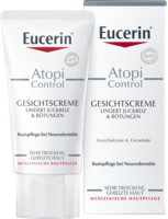 - Die Eucerin AtopiControl Gesichtscreme stärkt und beruhigt trockene, rissige Gesichtshaut und dient als feuchtigkeitsspendende tägliche Pflege in symptomfreien Phasen. Rötungen werden gemindert und Beschwerden, wie Jucken und ein Spannungsgefühl der Gesichtshaut, gelindert.