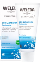 Die Weleda Sole-Zahncreme mit einem löslichen Putzkörper aus Natriumbicarbonat (Salz) beugt Karies durch die Neutralisation schädlicher Säuren vor und hemmt somit auch die Neubildung von Zahnstein. Sie enthält keine Fluoride. Der einzigartige Putzkörper aus Salzkristallen regt außerdem den Speichelfluss und damit die physiologische Selbstreinigung an. Der angenehm prickelnde, leicht salzige Geschmack der Sole-Zahncreme wird abgerundet durch anregendes Pfefferminzöl, das langanhaltende Frische schafft.