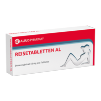 Mit der rechtzeitigen Einnahme eines dafür geeigneten Arzneimittels lässt sich den unliebsamen Beschwerden vorbeugen. REISETABLETTEN AL mit dem Wirkstoff Dimenhydrinat eignen sich sowohl zur Vorbeugung wie auch zur Behandlung der typischen Symptome der Reisekrankheit. REISETABLETTEN AL sind gut verträglich und bereits für Kinder ab 6 Jahren zugelassen. Die Tabletten sind mit einer Bruchkerbe versehen und lassen sich einfach in gleiche Dosen teilen.