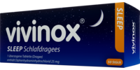 Anwendungsgebiete:Kurzzeitbehandlung von Schlafstörungen;Warnhinweise: Die Dauer der Behandlung soll 2 Wochen nicht überschreiten, dann bitte einen Arzt aufsuchen! Nach wiederholter Einnahme über einen längeren Zeitraum kann sich eine Toleranz ausbilden.Rebound-Schlaflosigkeit nach plötzlichem Absetzen.Nach Einnahme von Vivinox® Sleep Schlafdragees dürfen keine Fahrzeuge geführt oder gefährliche Maschinen bedient werden. Am Folgetag können sich Restmüdigkeit und beeinträchtigtes Reaktionsvermögen nachteilig auf die Fahrtüchtigkeit oder die Fähigkeit zum Arbeiten mit Maschinen auswirken, vor allem nach unzureichender Schlafdauer bzw. im Zusammenwirken mit Alkohol.Enthält Lactose, Sucrose (Zucker) und Weizenstärke.
