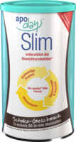 - apoday® Slim Schoko-Geschmack ist eine Mahlzeit für eine gewichtskontrollierende Ernährung mit Zuckern und Süßungsmitteln.
